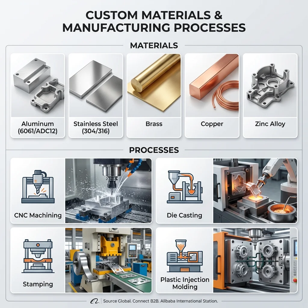 Lavorazione CNC, stampaggio di precisione, pressofusione, anodizzazione, verniciatura a polvere.